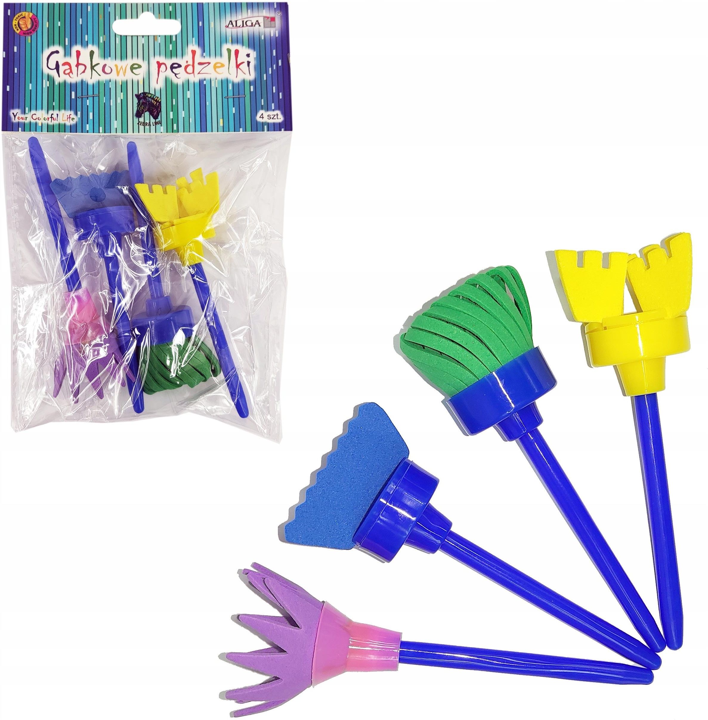 Pędzelki gąbkowe do malowania farbami 4 sztuki GĄBKOWE PĘDZELKI 4 SZTUKI ALIGA Gąbkowe pędzelki doskonałe do rozprowadzania wszelkiego rodzaju farb i mediów malarskich. Pędzelki z gąbką posiadają plastikową rączkę, która umożliwia wygodną pracę bez brudzenia rąk. Pędzle gąbkowe można stosować wiele razy! – wystarczy umyć je ciepłą wodą z mydłem, a następnie pozostawić do całkowitego wyschnięcia. Pędzelki o różnych kształtach zapewniają niesamowite efekty prac. Opakowanie zawiera 4 pędzelki o różnych końcówkach. Średnica główki 40 mm Długość trzonka 11 cm