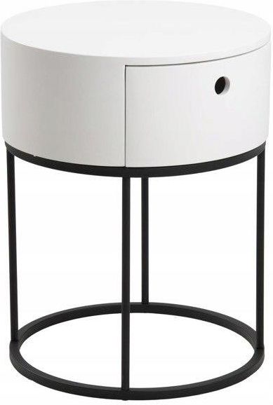 Szafka nocna OKRĄGŁA BIAŁA Polo czarna LOFT Szafka nocna Polo Szafka nocna Polo to doskonały dodatek do nowoczesnej sypialni. Minimalistyczny design, metalowa podstawa i okrągły blat z lakierowanej płyty MDF z niewielką, ale pojemną szufladą to doskonałe miejsce na podręczne drobiazgi. Dostępne w dwóch wariantach kolorystycznych. ✅ Styl nowoczesny ✅ Okrągły blat z płyty MDF ✅ Podstawa w formie płozów ✅ Niewielka, ale pojemna szuflada Kup teraz i uporządkuj swoją sypialnię! Wysokość (cm): 51 Szerokość (cm): 40 Głębokość (cm): 40 Styl: nowoczesny Kształt blatu : okrągły Funkcje/cechy: z szufladami Materiał podstawy: metal Materiał blatu: płyta MDF Materiał: metal, płyta MDF Kolor:: czarny, biały Kolor podstawy: czarny Typ mebla: Meble białe Kolor: biały, czarny Front: gładki Rodzaj podstawy: płozy