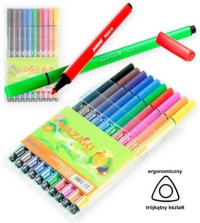 Mazaki o ergonomicznym trójkątnym kształcie idealnie układają się w dłoni. Żywe kolory zapewniają dzieciom długie godziny zabawy. Opakowanie zawiera 10 kolorów mazaków.