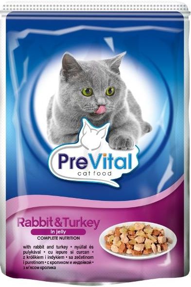 PreVital Mokra karma dla kota - saszetka z indykiem i królikiem w galaretce 100g Pełnoporcjowa karma dla kotów dorosłych. Smaczne i miękkie kawałeczki mięsa zanurzone w pysznej galaretce zapewnią Twojemu kotu odpowiednią ilość składników odżywczych, witamin i minerałów oraz dostarczą energii na …