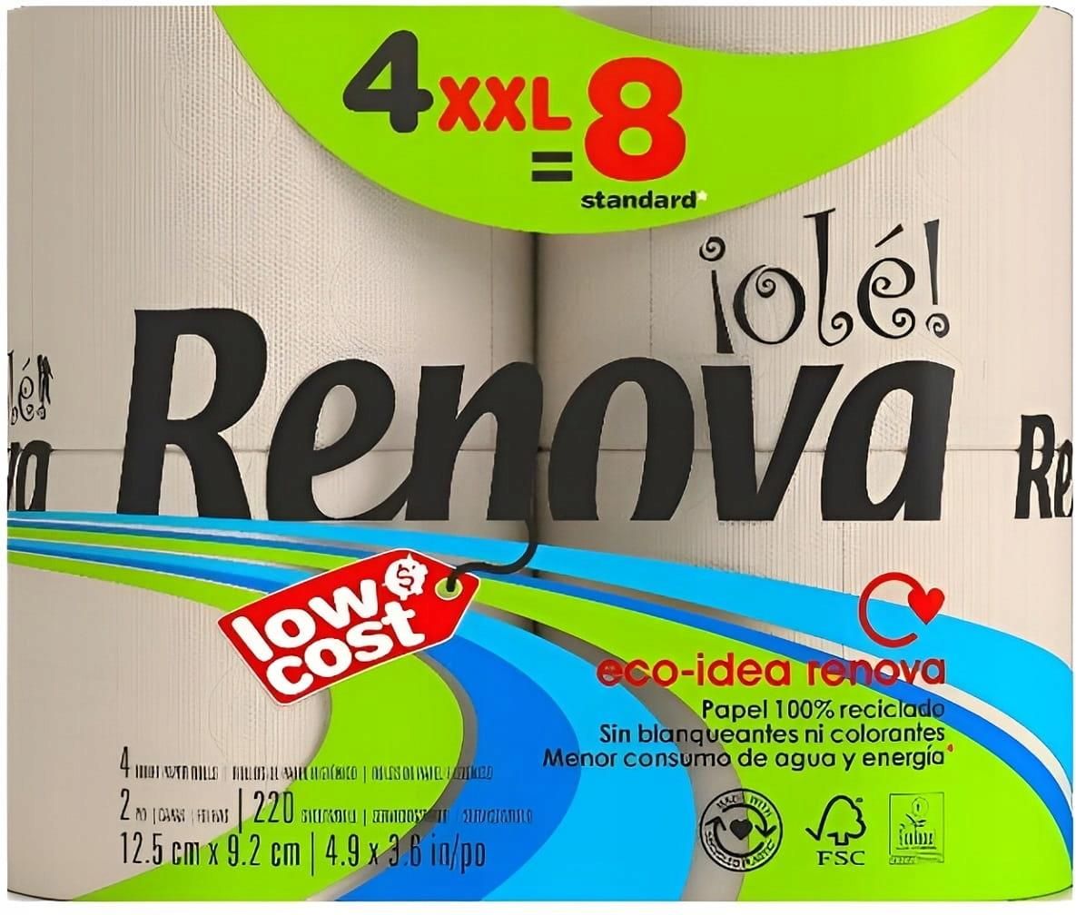 Papier Toaletowy Renova Ole! Ekologiczny 25.7m 2-Warstwy 220 Listki 4 Rolki Ekologiczny papier toaletowy Renova Ole! łączy jakość, wytrzymałość i troskę o środowisko. Wykonany z surowców pochodzących z recyklingu, posiada certyfikaty FSC i ECO, potwierdzające jego ekologiczne pochodzenie. Idealny …