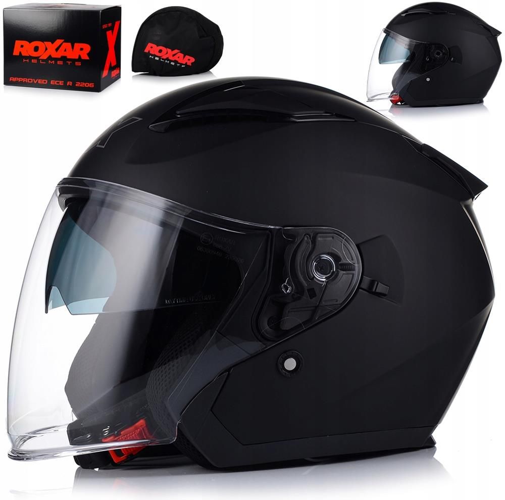 KASK MOTOCYKLOWY OTWARTY ROXAR ORLANDO CZARNY MATT SKUTER CHOPPER BLENDA Rozmiar: 2XL obwód głowy: 63-64cm Opis techniczny Model: ROXAR ORLANDO EVO Materiał skorupy: Technopolymer Wnętrze: EPS – poczwórna gęstość Zapięcie: Mikrometryczne Wizjer: Przezroczysty, długi, odporny na zarysowania Blenda przeciwsłoneczna: Tak Wentylacja: 4 otwory Przystosowany do interkomu: Tak Waga: ok. 1350 g (rozmiar L) Norma: ECE 2206 Wyściółka: Demontowalna i pralna System dopasowania: Morpho System Plus (poduszki i policzki w dowolnym rozmiarze) Kompatybilność z okularami: Tak Cechy główne Skorupa z Technopolymeru – trwałość i lekkość EPS o poczwórnej gęstości – maksymalna absorpcja uderzeń Homologacja ECE 2206 – spełnia najnowsze normy bezpieczeństwa Zapięcie mikrometryczne – szybkie i pewne zapięcie Wewnętrzna blenda przeciwsłoneczna – ochrona przed słońcem bez dodatkowych akcesoriów Długi wizjer z powłoką anti-scratch – przejrzystość i odporność na zarysowania System Morpho System Plus – indywidualne dopasowanie wnętrza 4 otwory wentylacyjne – lepszy przepływ powietrza Kompatybilny z interkomem – gotowy do montażu zestawu głośnomówiącego Komfortowy również dla osób noszących okulary Wnętrze w 100% demontowalne i nadające się do prania Kask motocyklowy ROXAR ORLANDO EVO – nowoczesna ochrona i komfort w trasie Bezpieczny, wygodny i gotowy na każdą podróż.ROXAR ORLANDO EVO to kask integralny z homologacją ECE 2206, wykonany z lekkiego Technopolymeru i wyposażony w powłokę EPS o poczwórnej gęstości. Dzięki blendzie przeciwsłonecznej, systemowi Morpho System Plus oraz opcji montażu interkomu, zapewnia komfort nawet podczas długich tras – także dla osób noszących okulary. W pełni demontowalne wnętrze można łatwo wyprać, a waga ok. 1350 g sprawia, że jest lekki i praktyczny. Jak dobrać rozmiar kasku? aby prawidłowo dopasować kask należy zmierzyć obwód głowy nad uszami w przypadku złego wyboru istnieje możliwość wymiany zalecamy wybór kasku o 1cm większego niż obwód głowy