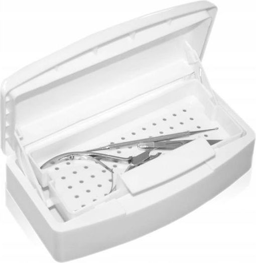 Sterylizator narzędzi Pojemnik do sterylizacji drobnych narzędzi, glowic do mikrodermabrazji, pilników itp. Kolor: BIAŁY Zalecany płyn idealnie nadający się do sterylizacji w wanience: ANIOSYME DD1 Wymiary zewnętrzne (wewnętrzne): -długość 22 cm (20,5 cm) -szerokość 11 cm (9cm) -wysokość 7,5 cm (5cm) Wymiary opakowania: -długość 23 cm -szerokość 13 cm -wysokość 8 cm