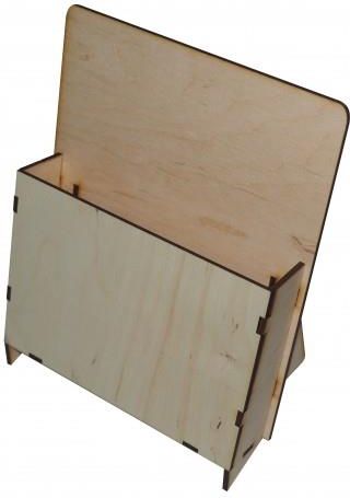 Deku - Drewniany stojak na ulotki - do składaniaA5x1 18x22,5x12 cm 570153 Stojak wykonany jest ze sklejki brzozowej za pomocą lasera CNC. Sklejka posiada atest higieniczny. W górnej części znajdują się otwory, co umożliwia powieszenie stojaka na ścianie lub na specjalnie zaprojektowanym stojaku. W …