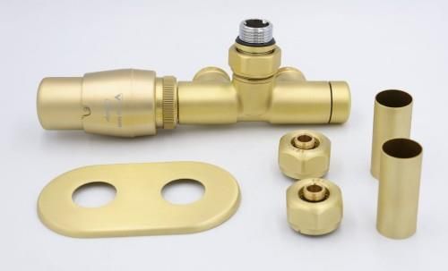 Varioterm Unico All in One zintegrowany zestaw termostatyczny z rurką zanurzeniową, tuleje i maskownica, adaptery, wersja prawa kolor mosiądz mat AUGS0229CFK/L Zawór termostatyczny z rurką zanurzeniową Varioterm Unico All in One kolor mosiądz mat AUGS0229CFK/L - cechy produktu: przeznaczenie: instalacja c.o. o rozstawie 50 mm, podłączenie do jednego pionowego kolektora grzejnika (rurka zanurzeniowa), nastawa wstępna: na wkładce zaworu odcinającego, głowica termostatyczna do montażu od strony powrotu, w komplecie: głowica termostyczna "Prestige", zawór kątowy, rurka zanurzeniowa, podwójna rozeta maskująca, tuleje maskujące (2x), adaptery (złączki zaciskowe), adaptery/złączki: do wyboru PEX 16x2 lub Cu (miedź), zawór zintegrowany kątowy, figura lewa, kolor: mosiądz mat (29). Uwaga! Zdjęcie główne przedstawia zawór w wersji - figura lewa.