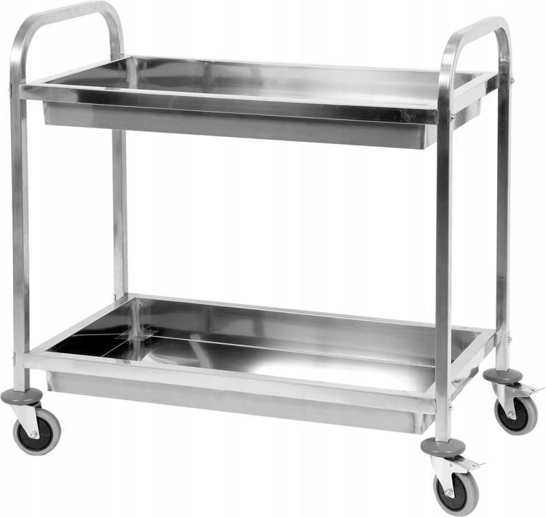 WÓZEK KELNERSKI 2 PÓŁKOWY SERWISOWY GŁĘBOKI YATO YG-09099 Marka Model: YATO Nr katalogowy: YG-09099 Certyfikat CE / Atest: Tak Dane techniczne Marka: Yato Symbol: YG-09099 Seria: GRL Liczba półek: 2 Wymiary: 950x500x950 mm Materiał: stal nierdzewna 201 Składany: tak Kółka: TAK Liczba kółek: 4 Liczba kółek z hamulcem: 2 Narożne odbojniki: tak Łatwe czyszczenie: tak Dane techniczne Materiał kółka: TPR Zaokrąglone krawędzie: tak Rozmiar półki: 820x430 mm Odstęp między półkami: 500 mm Mata wyciszająca: tak Maks. obciążenie półki: 45 kg Grubość półki: 0.6 mm Rant zabezpieczający: tak Rodzaj półki: głęboka Grubość ścianki rurki: 0.9 mm Rozmiar rurki: 25x25 mm Profesjonalny wózek serwisowy YATO o wymiarach 950x500x950 mm jest idealnym rozwiązaniem dla dużych i średnich obiektów gastronomicznych takich jak hotele i restauracje oraz firmy cateringowe. Wysoka jakość wykonania wraz z solidnymi elementami konstrukcji jest gwarancją wieloletniej bezawaryjnej pracy. Technologia montażu, bez widocznych na zewnątrz elementów łączących, gwarantuje elegancką prezencję, zwiększając walory wizualne. Dzięki temu wózek YATO jest dedykowany również dla prestiżowych placówek gastronomicznych. Wózek wykonany jest z wysokiej jakości stali nierdzewnej typu 201. Gwarantuje to odporność na rdzę i zapewnia wysokie walory użytkowania oraz łatwość utrzymania w czystości. Bez problemu można użytkować go na zewnątrz. Pod spodem każdej półki zastosowano maty dźwiękochłonne, wykonane ze specjalnej pianki, która tłumi drgania i hałas powstający podczas transportu. Dwie duże półki o wymiarach 820x430 mm i głębokości 90 mm zakończone są specjalnym rantem, który zabezpiecza transportowane produkty przez ześlizgnięciem podczas przewożenia. Wszystkie krawędzie wózka są zaokrąglone, co dodatkowo zwiększa bezpieczeństwo podczas użytkowania. Rozstaw między półkami to 500 mm, co umożliwia transportowanie produktów o większych gabarytach, takich jak dozowniki do soków, termosy na kawę i herbatę itp. Nośność każdej z półek to 45 kg. Wózek wyposażony jest w 4 kółka z łożyskami, wykonane z wysokiej jakości szarego TPR. Zastosowanie twardego, a jednocześnie elastycznego materiału zapewnia bardzo cichą pracę. Kółka nie rysują posadzki, nie pozostawiają na niej śladów i są skrętne w zakresie 360°. Umożliwia to manewrowanie w trudno dostępnych pomieszczeniach i wąskich korytarzach. Dwa kółka wyposażono dodatkowo w hamulce. Zakres dostawy urządzenie instrukcja obsługi opakowanie Produkt ten idealnie również nadaje się na prezent.