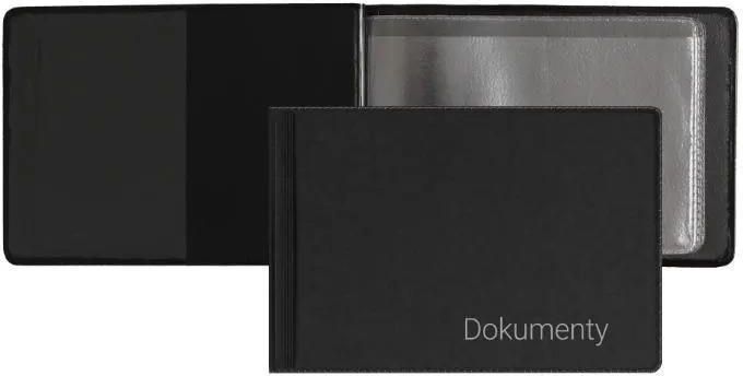 Okładka wykonana ze spienianej folii PVC w kolorze czarnym, wewnątrz usztywniona tekturą. Wyposażona w 4 kieszonki i 2 kieszenie na wewnętrznej stronie okładek. Okładka pozioma w wygodnym, kieszonkowym formacie. Wymiary: 103x71 mm