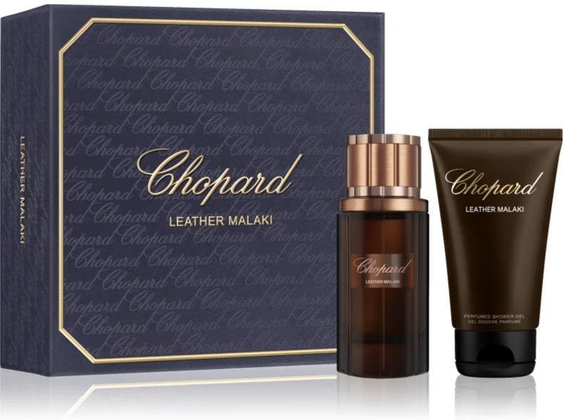 Chopard Leather Malaki woda perfumowana 80 ml + żel pod prysznic 150 ml Ten drogocenny kuferek, inspirowany Place Vendôme i owinięty w legendarny błękit Chopard, zawiera zapach Leather Malaki dla mężczyzn wraz z perfumowanym żelem pod prysznic. Idealny pomysł na prezent na zmysłowe chwile z nutką elegancji. Niczym nieodparte wezwanie do przygody, Leather Malaki kusi zaskakującym kontrastem między intensywnością skóry a ciepłem drzewno-bursztynowych i dymnych nut. Pierwszorzędne naturalne surowce tej wody perfumowanej pochodzą od najlepszych producentów i są wybierane zgodnie z najsurowszymi kryteriami jakości.