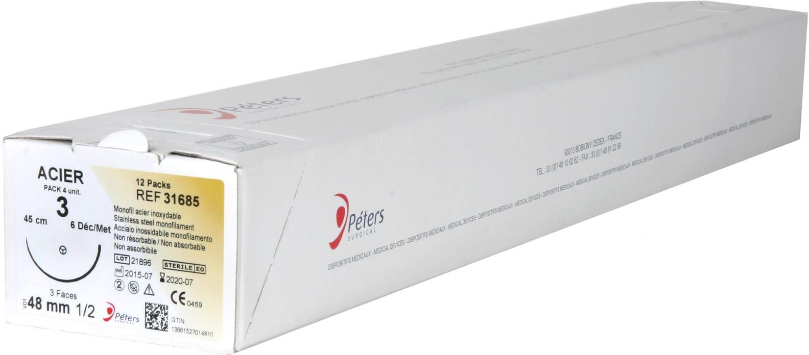 ACIER to marka nici chirurgicznych metalowych produkowanych przez Péters Surgical. Są to monofilamentowe druty ortopedyczne wykonane ze stali chirurgicznej 300. Druty stalowe ACIER mają metaliczny kolor i występują w rozmiarach USP 2/0 – 8. Dostępne są z atraumatycznymi igłami chirurgicznymi powlekanymi silikonem lub bez igieł. Drut chirurgiczny Acier jest wykonany z wysokiej jakości stopu stali nierdzewnej 300. Charakteryzuję się zwiększoną wytrzymałością i wysoką elastycznością, co umożliwia łatwe zawiązanie węzła bez ryzyka pęknięcia szwu. Giętkość drutu pozwala na łatwe i bezpieczne zbliżanie brzegów mostka i kości. Drut ortopedyczny ACIER dedykowany jest do zespoleń mostka i innych zespoleń ortopedycznych w obrębie kości.