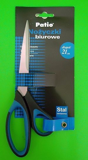 Nożyczki 21 cm, stal nierdzewna. Uwaga! Producent oferuje w sprzedaży różne wzory opakowań ukazanych w ofercie. Nie ma to wpływu na zawartość produktu. Cena dotyczy 1 sztuki.