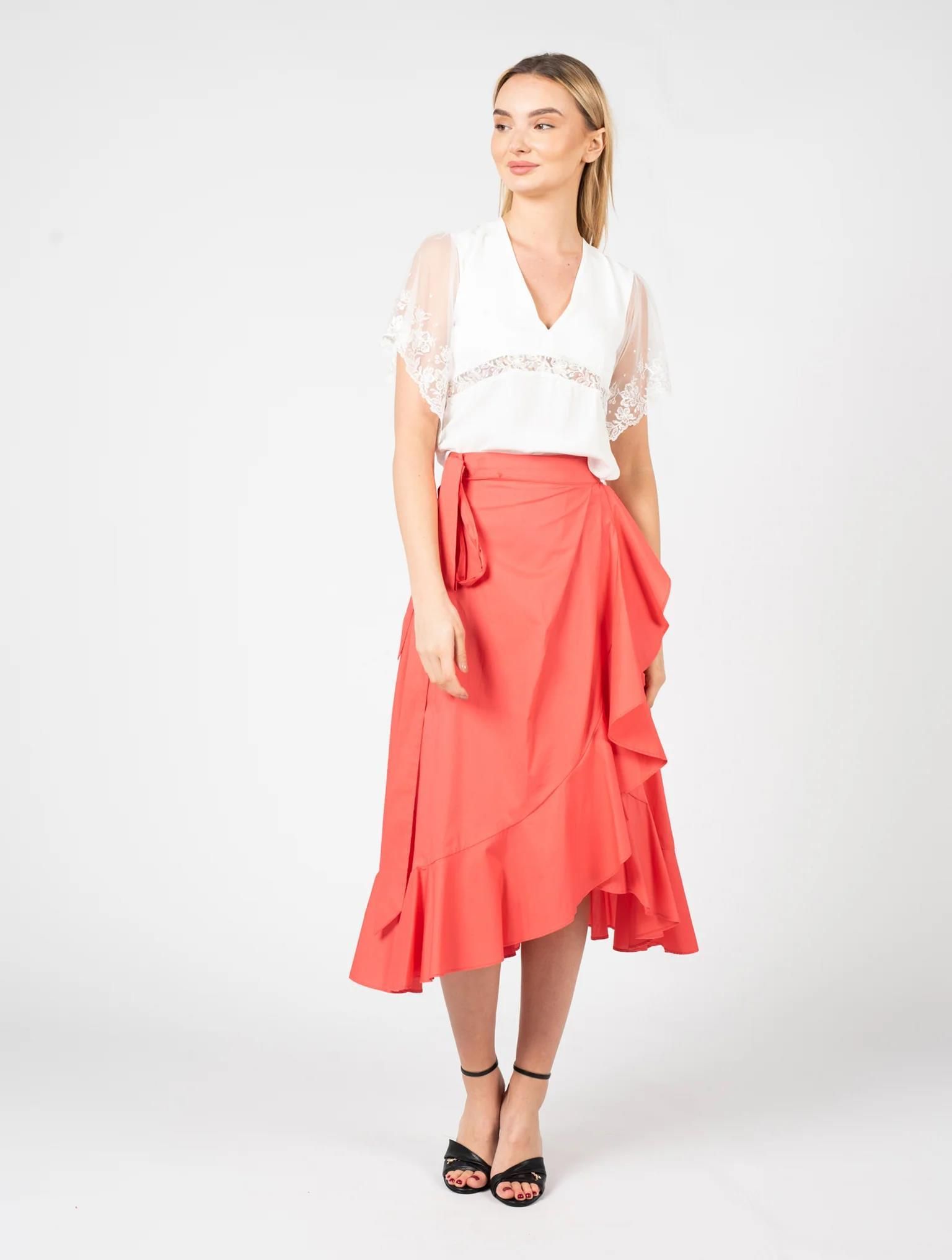 Dopasowany fason tego eleganckiego ubrania podkreśli Twoją sylwetkę, gwarantując jednocześnie komfort noszenia i swobodę ruchów, co sprawia, że będzie ono idealne zarówno na co dzień, jak i na specjalne okazje. Dekolt V-neck jest nie tylko stylowy, ale także uniwersalny, co oznacza, że pasuje do różnych typów sylwetek, a także świetnie komponuje się z różnorodnymi dodatkami, od delikatnych naszyjników po eleganckie szale. Rękawy ozdobione koronką dodają romantycznego charakteru i subtelnej elegancji, sprawiając, że ten element staje się wyrafinowanym akcentem, który przyciąga spojrzenia i nadaje wyjątkowości całej stylizacji. Wykonany z wysokiej jakości tkaniny z dodatkiem jedwabiu, ten produkt oferuje nie tylko luksusowy wygląd, ale także niezrównany komfort noszenia, dzięki czemu skóra może oddychać, a ubranie zachowuje swój kształt i piękno przez długi czas.