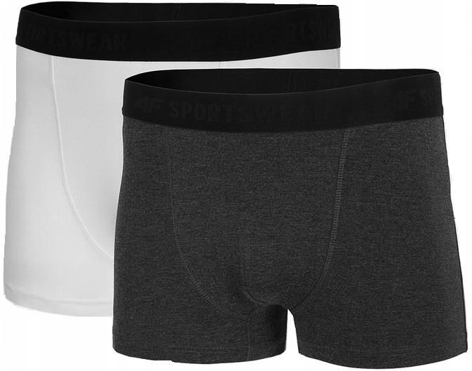Bokserki męskie 4F białe szare NOSH4 BIM001 10S 23M Oddychające męskie bokserki 4F gwarantują maksimum komfortu przez cały dzień. Szorty wykonane zostały z mieszanki naturalnych bawełnianych włókien i dodatku elastanu, co zapewnia uczucie miękkości i wygodę. Dopasowany krój z krótkimi nogawkami. Elastyczna taśma w pasie z oznaczeniem marki. Klasyczna kolorystyka. Zestaw 2 par bokserek w kolorze białym i szarym. Materiał 1: 95% bawełna, 5% elastan Materiał 2: 57% bawełna, 38% poliester, 5% elastan