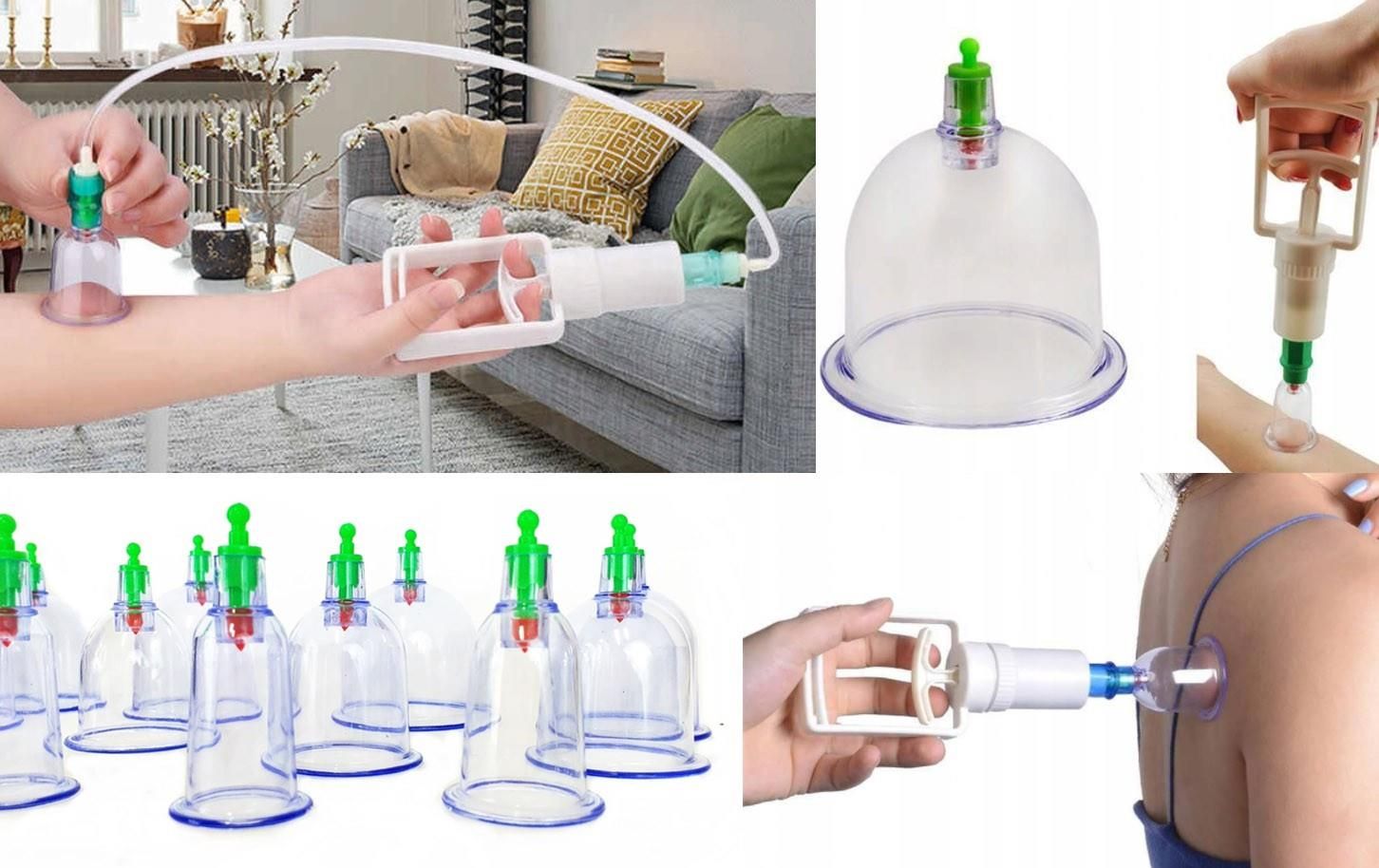 Bańki chińskie próżniowe bezogniowe. Zestaw 12 chińskich baniek próżniowych z końcówkami magnetycznymi i pompką! Doskonały pogromca chorób i cellulitu. Znacznie wygodniejsze i bezpieczniejsze w użyciu niż standardowe, szklane bańki spirytusowe. Komplet chińskich baniek próżniowych o potrójnym działaniu: - działanie podciśnieniem - działanie polem magnetycznym - stymulacja punktów zaostrzonym grotem magnesu Zasada działania: podciśnienie wytwarza się poprzez odessanie powietrza za pomocą specjalnej pompki po wcześniejszym przyłożeniu bańki do skóry, a umieszczony na końcu każdej z nich zawór utrzymuje ten stan w ich wnętrzu. Podczas zabiegu grot magnesu uciska i stymuluje polem magnetycznym punkty akupunkturowe. Grot wykonany z namagnesowanego stopu. Linie pola magnetycznego wnikają na głębokość 12 cm w głąb ciała, odatkowo bańki aktywują punkty akupunkturowe za pomocą podciśnienia oraz powierzchniowej stymulacji, jak w przypadku akupresury. Działanie pola bioelektromagnetycznego pobudza enzymy i wzmacnia odporność organizmu, a połączenie tych kilku terapii jednocześnie łagodzi wiele codziennych dolegliwości, ponadto zwiększa wchłanianie leków i działa relaksująco. Bańki próżniowe (bezogniowe) zyskują coraz większą popularność przez wzgląd na wygodę ich stawiania (dzięki rurce bańki można stawiać bez pomocy drugiej osoby nawet na plecach) oraz na bezpieczeństwo (brak możliwości poparzenia się jak przy bańkach szklanych). Specyfikacja: Materiał: tworzywo sztuczne 12 szt. baniek próżniowych różnej wielkości Pompka i wężyk Końcówki magnetyczne Kolor: przezroczyste Wymiary: 7,5 cm x 6,5 cm, 7 cm x 5,6 cm, 6,5 cm x 5 cm, 6 cm x 4,4 cm, 6 cm x 3,4 cm, 6 cm x 3 cm Produkt wykorzystywany jest w ośrodku The Academy Of Regenerative Medicine, wykorzystując autorską metodę Aliaksandra Haretskiego przeprowadza kompleksowe oczyszczanie i regenerację organizmu. Ta unikalna metoda pozwala nie tylko na uzdrowienie uszkodzonych części ciała, lecz całego organizmu poprzez oczyszczenie go z toksyn, likwidację głównych przyczyn powstania choroby, wzmocnienie układu odpornościowego i uruchomienie samoodnowy organizmu. Metoda ta uznawana jest za jedyną na świecie skuteczną metodę uzdrawiania z wielu chorób nieuleczalnych. Jej skutek uboczny jest wręcz bardzo porządany, gdyż jest nim odmłodzenie i powstrzymanie procesu starzenia się organizmu. Więcej o ośrodku http://www.medycynaludowa.com Zamieszczone w serwisie opisy produktów mają charakter tylko i wyłącznie informacyjny. Nie zastępują konsultacji z specjalistą i nie mogą być podstawą do stosowania jakichkolwiek wyrobów medycznych, środków farmaceutycznych czy form terapii. Wszelkie decyzje w w/w kwestii należy konsultować z specjalistą. Konsultacja online z Aleksander Haretski dostępna w kategorii szkolenia w naszym sklepie medycynaludowa.com/shop/ Описания товаров, размещенные на сайте, носят ознакомительный характер. Они не заменяют консультации у специалиста и не могут быть основанием для применения каких-либо медицинских изделий, лекарственных средств или форм терапии. Все решения по вышеуказанным вопросам должны быть согласованы со специалистом. The product descriptions posted on the website are for informational purposes only. They do not replace consultations with a specialist and cannot be the basis for the use of any medical devices, pharmaceuticals or forms of therapy. All decisions on the above-mentioned issues should be consulted with a specialist. Bańki chińskie Bańki chińskie Bańki chińskie Bańki chińskie Bańki chińskie