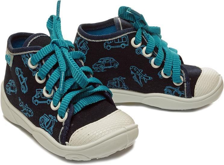 Kapcie dziecięce. Tekstylna cholewka. Usztywnione zapiętki. Sznurowanie. Elastyczna podeszwa.