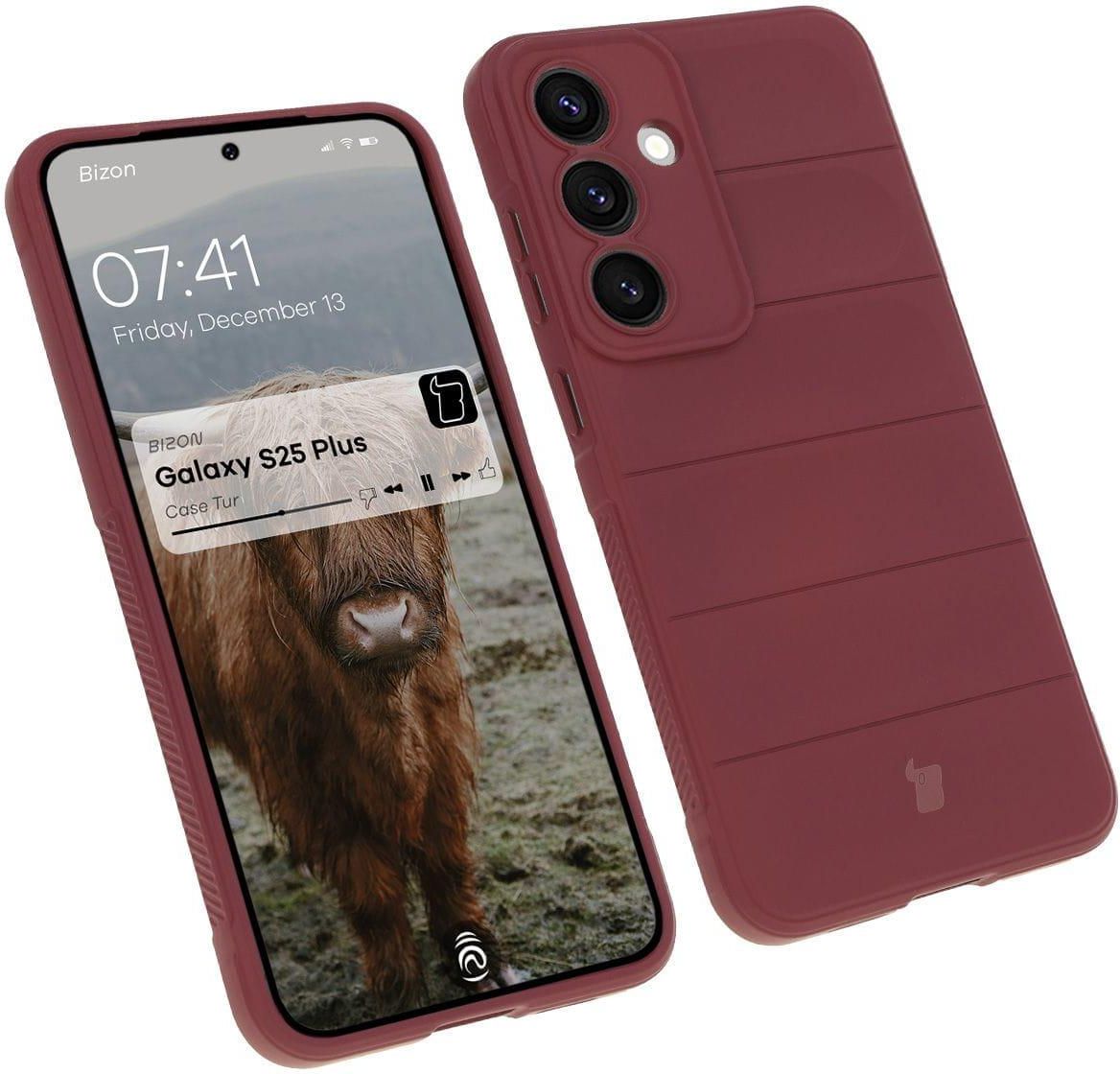 Bizon Case Tur Do Samsung Galaxy S25 Plus Wersja kolorystyczna: Dark Purple (ciemnofioletowa) Materiał: TPU Pancerny design Ochrona przed zarysowaniami i zabrudzeniami + amortyzacja w razie upadku Wzmocnione narożniki Podwyższone krawędzie Wyściółka z mikrofibry Łatwy montaż i demontaż Dedykowane wycięcia na obiektywy Zintegrowane osłony na przyciski Kompatybilność z ładowaniem indukcyjnym W środku etui mogą znajdować się przebarwienia. Nie wpływają one na wygląd zewnętrzny obudowy. Przedmiotem sprzedaży jest samo etui, pozostałe akcesoria widoczne na zdjęciach służą jedynie przedstawieniu jego funkcjonalności. Kod produktu: 5904665323625 Kod producenta: BCTGALS25PDPU Etui kompatybilne ze szkłami* o wymiarach mniejszych niż (dług./szer.): 15,66 x 7,36 cm * Bolączki z dobraniem pasującego szkła? Wybierz Bizon Glass Clear ❤️! Pancerna ochrona Etui marki Bizon z serii Tur to inspirowana naturą, elastyczna obudowa, która świetnie sprawdzi się w codziennym użytkowaniu i zapewni Twojemu smartfonowi wysoką ochronę przed zarysowaniami, zabrudzeniami oraz w razie upadku! Etui wyróżnia subtelne logo w kształcie głowy bizona. Mocna konstrukcja Pokrowiec został wykonany z giętkiego, termoplastycznego poliuretanu, dzięki czemu montaż i demontaż nie sprawi Ci większych problemów. Etui cechuje niewielka grubość wynosząca zaledwie 2 mm, a jego dodatkowym atutem jest ukryta w środku warstwa z mikrofibry, która dodatkowo ochroni telefon w razie upadku. Wyżłobienia na pleckach nie tylko ładnie wyglądają, ale zachowują się także jak niewidzialne poduszki powietrzne i amortyzują w razie wstrząsów czy upadku! Aby zapewnić Twojemu telefonowi najlepszą ochronę, takie samo rozwiązanie zastosowano również w rogach obudowy. Pewny chwyt Miałeś kiedyś do czynienia z etui, które dosłownie samo wypadało z rąk? Z Turem to zupełnie inna bajka! Obudowa telefonu została zaprojektowana z myślą o lepszym chwycie. Teksturowane boki pozwolą Ci na pewniejszy i stabilniejszy chwyt urządzenia, a gdyby i tak zdarzyło Ci się je niefortunnie upuścić ekranem do dołu, to podwyższone krawędzie wokół niego nie pozwolą, aby bezpośrednio zderzyło się z podłogą! Uniesione brzegi znajdują się także wokół wyspy aparatu, co w połączeniu z dedykowanymi wycięciami na obiektywy tworzy podwójną ochronę dla aparatu. Swobodny dostęp Tur to nie tylko solidna konstrukcja, ale także gwarancja płynnego działania przycisków, które będą dodatkowo chronione dzięki zintegrowanym osłonom! Oprócz idealnego dopasowania do kształtu telefonu etui posiada także wszelkie niezbędne wycięcia i zapewnia pełen dostęp do portów. A jeśli wolisz ładować bezprzewodowo, to możesz to robić bez ściągania obudowy, ponieważ pokrowiec doskonale współgra z ładowaniem indukcyjnym (dotyczy modeli wyposażonych w tę funkcję).