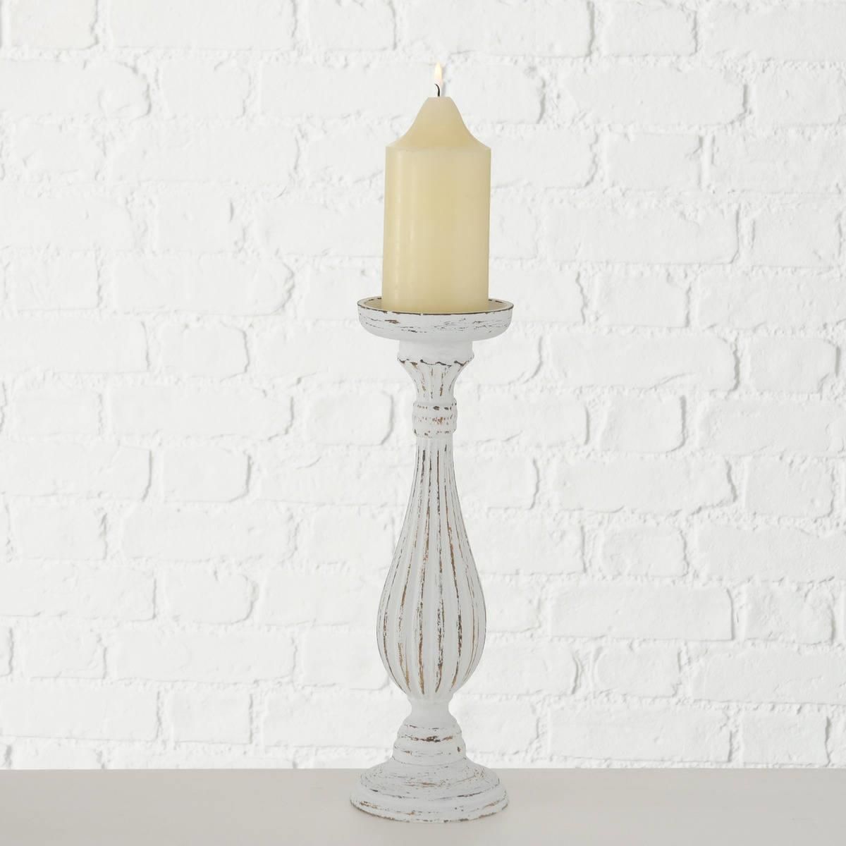 Klasyczny świecznik z delikatnymi, pionowymi żłobieniami i postarzaną bielą, ozdobiony subtelnymi przetarciami. Świecznik Antiquo to elegancki dodatek w stylu retro, który idealnie dopełni wystrój wnętrz o klasycznym charakterze. Wykończony w odcieniu antycznej bieli z subtelnymi przetarciami, przyciąga uwagę swoją wyjątkową formą i starannymi detalami. Ten świecznik jest idealnym wyborem na romantyczny wieczór lub stylową dekorację stołu. Jego smukła sylwetka i finezyjne zdobienia wprowadzą do każdego wnętrza odrobinę nostalgicznego uroku. Do kompletu dobierz świece o średnicy ok 9 cm. Wymiary: śr. 11 cm, wys. 34 cm