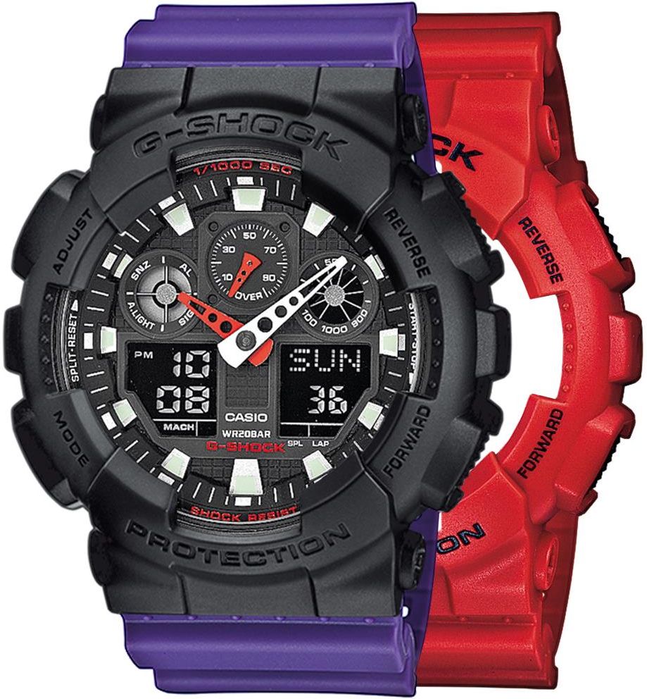 SET GA-100B-4AER + BEZEL 10358741 + PASEK 10498156 - Darmowa dostawa w 24h, możliwość wygrawerowania dowolnego tekstu.