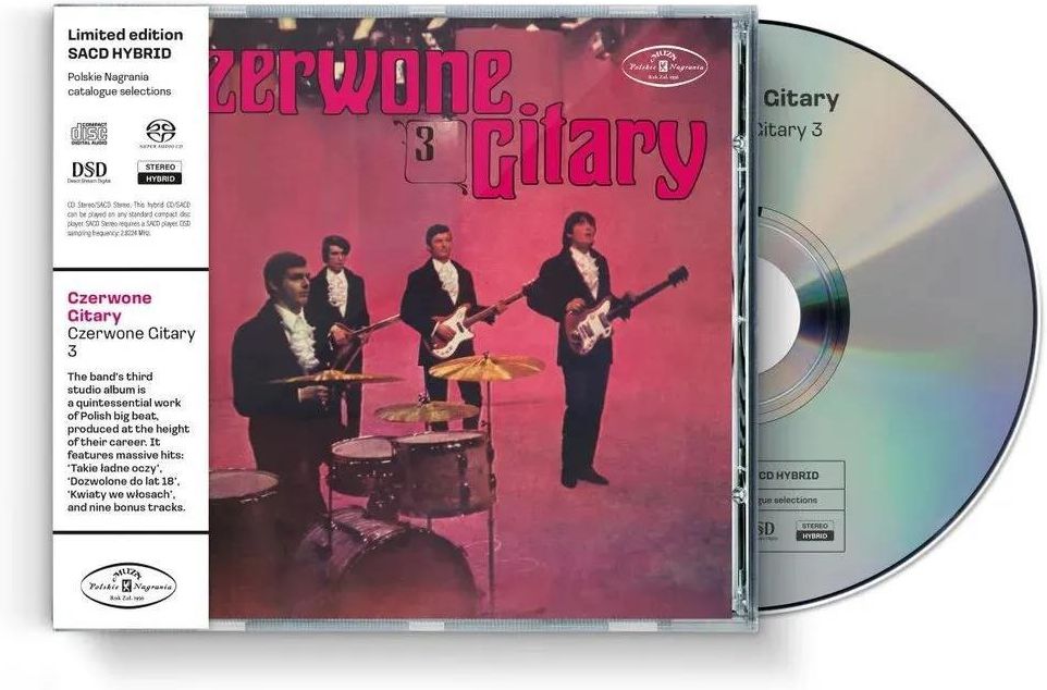 Czerwone Gitary - Czerwone Gitary 3 (SACD) Limitowana edycja trzeciego studyjnego albumu zespołu Czerwone Gitary (SACD Hybrid) wydana w limitowanym nakładzie, w cyklu „Polskie Nagrania catalogue selections”. Jest to pierwsza w Polsce edycja tej płyty zrealizowana w formacie SACD (Super Audio …