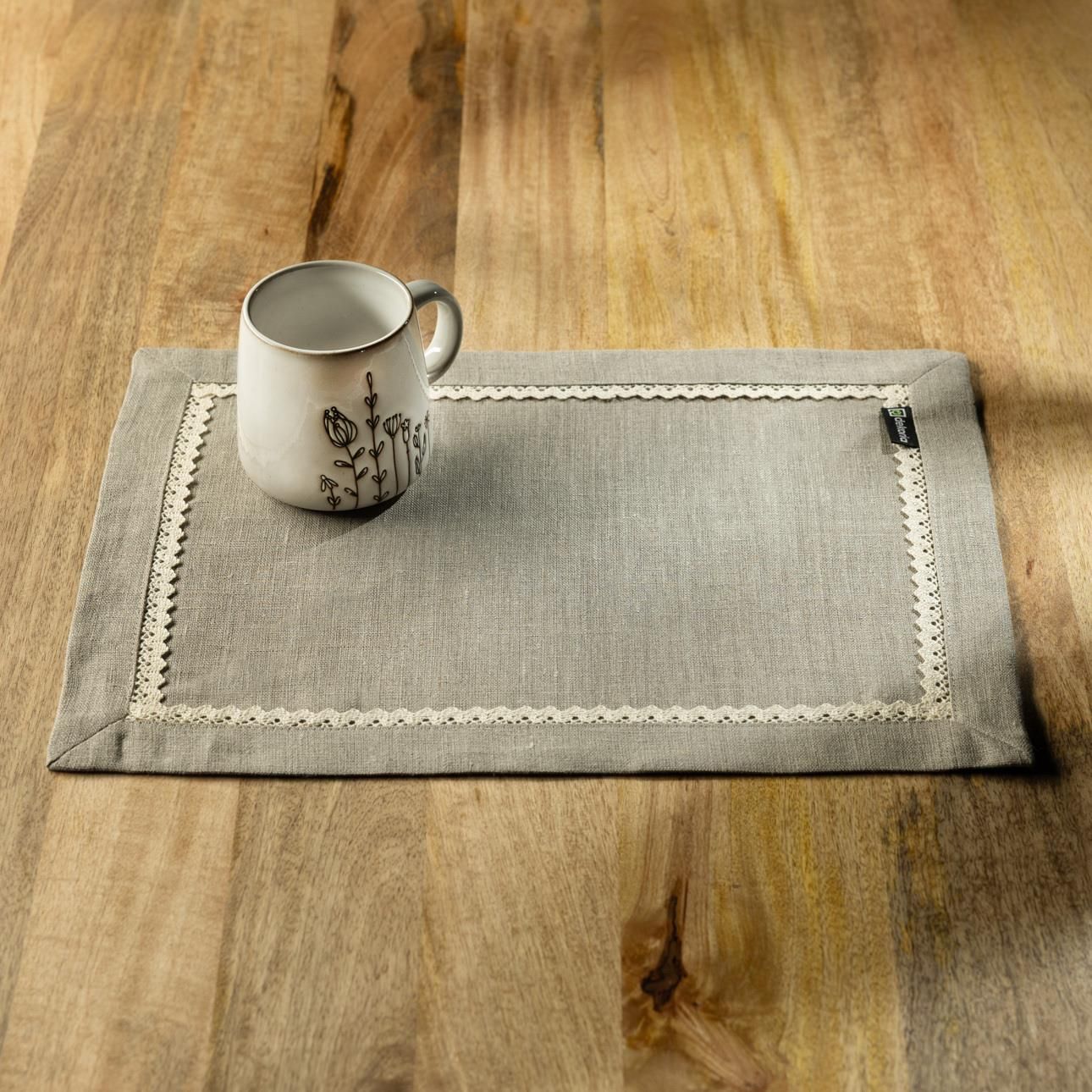 Lniane podkładki na stół z koronką. Wprowadź do swojej jadalni naturalny urok i ponadczasową elegancję dzięki lnianym podkładkom na stół ozdobionym subtelną koronką. Dostępne w dwóch odcieniach naturalnego lnu – jaśniejszym i ciemniejszym – idealnie wpisują się w estetykę stylu rustykalnego, boho czy skandynawskiego. Delikatna koronka dodaje całości lekkości i romantycznego charakteru. Te dekoracyjne podkładki nie tylko chronią powierzchnię stołu, ale również pięknie eksponują nakrycia i wprowadzają wyjątkowy klimat podczas codziennych posiłków oraz spotkań w gronie bliskich. Wykonane z naturalnego lnu, są trwałe, estetyczne i przyjazne środowisku. Zestaw zawiera 2 podkładki o wymiarach 30x40 cm. Wymiary produktów wykonanych z tkanin objęte są tolerancją w granicach +/- 2 cm na długości i szerokości. Margines błędu w wymiarach jest wynikiem właściwości materiału.