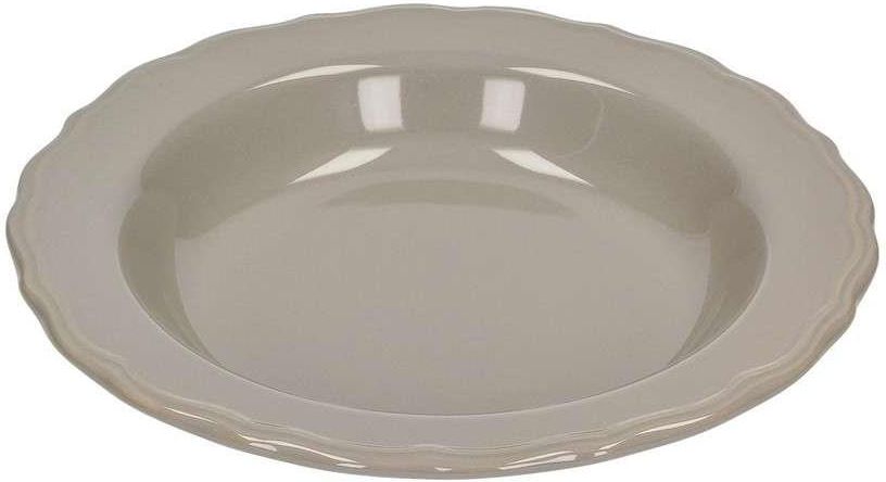 Talerz głęboki Clarence ⌀23cm, ⌀ 23 cm Głęboki talerz ceramiczny z ozdobnym rantem w brązowym kolorze. Zaserwuj Twoje posiłki w wyjątkowy sposób! Głęboki talerz z ceramiki z dekoracyjnym rantem to propozycja naczynia o niebanalnym charakterze. Doskonale sprawdzi się zarówno na co dzień, jak i podczas rodzinnych uroczystości. Wspaniale prezentuje się w komplecie z pozostałymi naczyniami z tej samej serii. Wymiary: śr. 23 cm, wys. 4 cm. Można myć w zmywarce do naczyń. Można używać w kuchence mikrofalowej. Dane produktu Waga: 0.58kg Rozmiar: ⌀ 23 cm Materiał: ceramika Elementy zastawy stołowej: miseczka/ talerz głęboki Seria: Clarence
