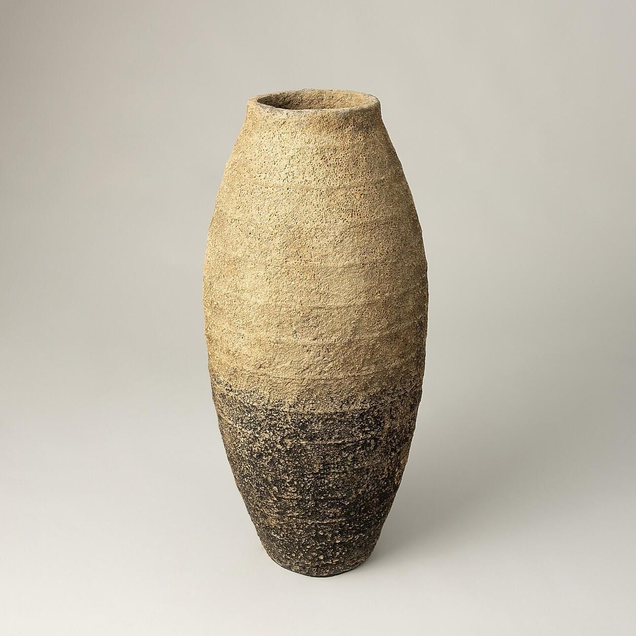 Wysoki wazon z surową fakturą w kolorach ziemi. Dekoracyjny wazon wykonany z mieszanki włókien, cementu i piasku – wyjątkowy akcent, który nada charakter każdemu wnętrzu. Jego smukła forma sprawia, że prezentuje się imponująco zarówno ustawiona samodzielnie, jak i w towarzystwie innych dodatków. Przeznaczona wyłącznie do użytku wewnętrznego, stanowi trwały i stabilny element aranżacji. Naturalna kolorystyka, łącząca ciepłe odcienie ziemi z ciemniejszym akcentem w dolnej części, idealnie komponuje się z drewnem, lnem i rattanem. Dzięki temu waza znakomicie odnajdzie się w salonie, holu czy jadalni urządzonych w stylu skandynawskim lub rustykalnym. Jej ciężar i solidność podkreślają unikalny charakter, wprowadzając do przestrzeni równowagę i naturalną harmonię. Skompletuj go z innymi wazonami marki Dekoria i ciesz wyjątkowym efektem! Wymiary: śr. 45 cm, wys. 100 cm.Uwaga: Wazon powinien znajdować się wyłącznie w pomieszczeniach. Nie zaleca się wlewania wody do wazonu ze względu na właściwości materiału, z którego jest wykonany, ponieważ może naturalnie przepuszczać wodę.