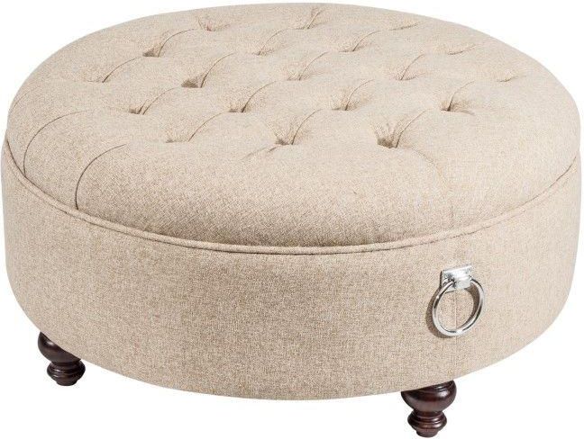 Puf okrągły Babette, ⌀97 cm Kod produktu: 006-117 Pikowany puf/siedzisko w kolorze beżowym. Funkcjonalny salon to taki, w którym oprócz wygodnej kanapy i fotela znajdzie się puf. Puf to idealny mebel, który będzie spełniał funkcje dodatkowego miejscem do siedzenia, ale i wygodnego podnóżka podczas odpoczynku na sofie, czy fotelu. Zastosowań może być wiele, wszystko zależy od naszych potrzeb. Wymiary: śr. 97cm, wys. 50cm. Materiał: drewno mahoniowe/ tkanina obiciowa 100%poliester. Dane produktu Waga: 21.00kg Rozmiar: ⌀97 cm Pomieszczenie: salon Materiał: tkanina, drewno mahoniowe