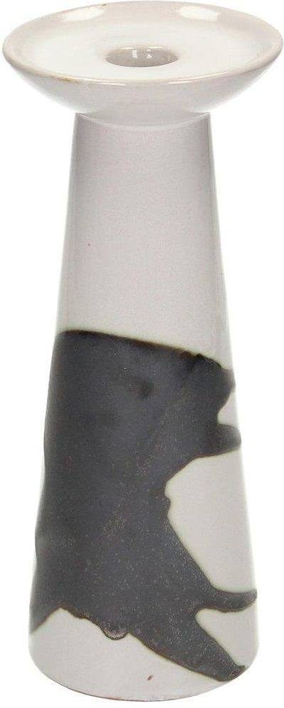 Świecznik z porcelany o oryginalnym zdobieniu. Świecznik z charakterystycznym zdobieniem to propozycja dla miłośników oryginalnych dodatków. Przepięknie zaprezentuje się umieszczony na stoliku nocnym, komodzie czy stole. Wykonany z porcelany urzeka oryginalnym, metalicznym zdobieniem. Skompletuj go z innymi świecznikami serii Fantoccio. Świecznik przeznaczony na świece o średnicy 2,4 cm, sprawdzi się także przy świecach typu walec. Wymiary: śr. 9,4 cm, wys. 23 cm.