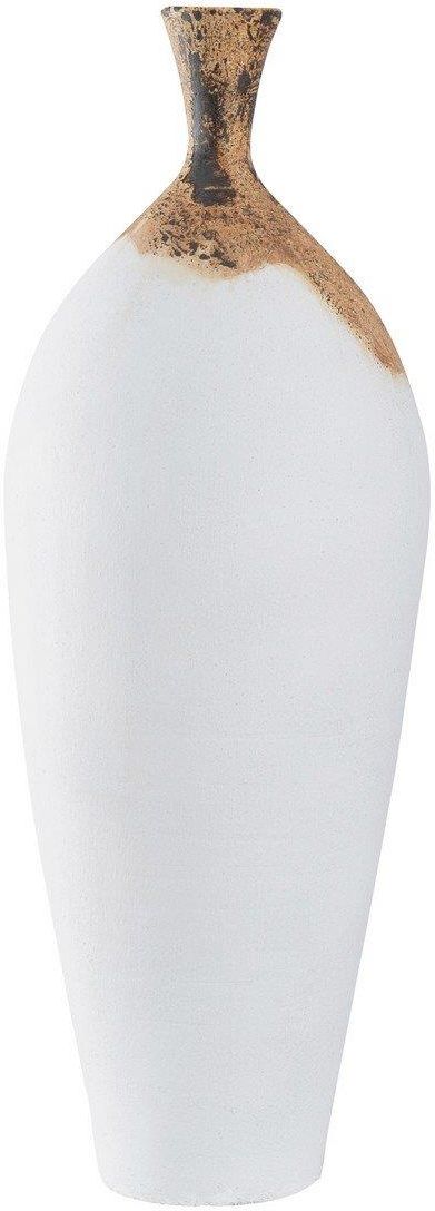 Unikatowy wazon w kolorze białym z fantazyjnym detalem. Wazon prezentuje się elegancko i klasycznie, a jego biały kolor nadaje mu lekkości i świeżości. Charakterystyczne brązowo-czarne przetarcia dodają mu rustykalnego uroku, nadając mu wyrazistego charakteru i nuty vintage. Fantazyjny detal i staranna obróbka sprawiają, że wazon Ejo emanuje autentycznym urokiem rzemieślniczego wykonania. Wazon umieszczony na tarasie, balkonie lub ogrodzie wspaniale wyeksponuje dekoracje roślinne lub wystąpi jako samodzielna dekoracja. Ten wyjątkowy dodatek doskonale harmonizuje z naturalnym pięknem i kolorami kwiatów. Sprawdź ofertę na wazony od Dekoria i znajdź swój ulubiony! Wymiary: śr. 36 cm, wys. 99 cm.