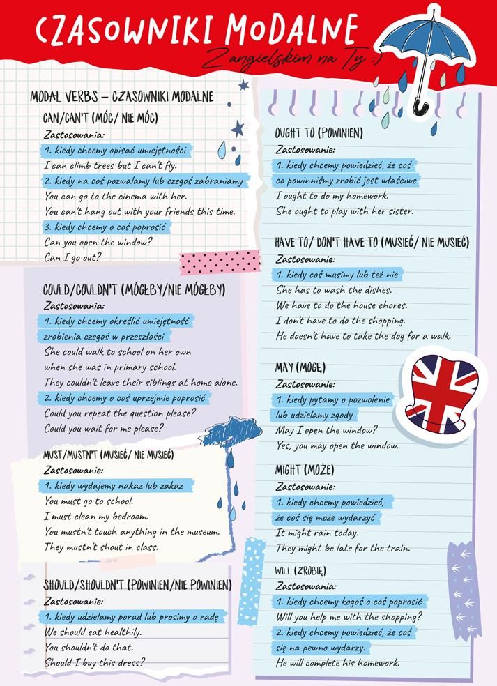 Dwustronna Plansza A4 Angielski Czasowniki Modalne Tryby Warunkowe Wałbrzych