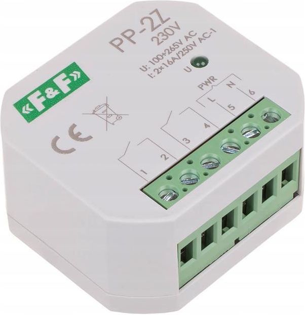 F&F Przekaźnik elektromagnetyczny 2Z 16A PDT, PDT,U=100-265V AC styk:2Z 16A PP-2Z 230V Przekaźnik elektromagnetyczny F&F PP-2Z 230V to niezawodne rozwiązanie, które zostało zaprojektowane z myślą o zastosowaniach w automatyce domowej oraz przemysłowej. Jego główną funkcją jest skuteczne zabezpieczenie instalacji elektrycznej poprzez kontrolę przewodzenia prądu, co przyczynia się do zwiększenia bezpieczeństwa użytkowników oraz ochrony podłączonych urządzeń. Typ zabezpieczenia Na rynku dostępne są różne typy zabezpieczeń elektrycznych, a przekaźniki elektromagnetyczne, takie jak model PP-2Z 230V, odgrywają kluczową rolę w systemach automatyki. Wśród dostępnych typów zabezpieczeń można wyróżnić: wyłączniki nadprądowe, chroniące przed przeciążeniem i zwarciem, wyłączniki różnicowoprądowe, zapewniające bezpieczeństwo przed porażeniem prądem elektrycznym, ograniczniki przepięć, zabezpieczające urządzenia przed nagłymi skokami napięcia, przekaźniki elektromagnetyczne, umożliwiające zdalne sterowanie obwodami elektrycznymi, czujniki temperatury, monitorujące warunki pracy urządzeń, moduły czasowe, pozwalające na programowanie pracy obwodów. Przekaźnik F&F to doskonałe rozwiązanie dla osób, które potrzebują skutecznego zabezpieczenia w swojej instalacji. Parametry techniczne Parametry techniczne przekaźnika są kluczowe dla zapewnienia jego skuteczności w danym zastosowaniu. Odpowiednie parametry pozwalają użytkownikom dobrać urządzenie, które najlepiej spełni ich wymagania. Model PP-2Z 230V charakteryzuje się: prądem znamionowym: 16 A, co sprawia, że urządzenie jest odpowiednie do wielu zastosowań, napięciem znamionowym: 100-265 V AC, co umożliwia użycie w różnych instalacjach elektrycznych, poborem energii: maksymalnie 0,6 W podczas załączenia oraz 0,15 W w trybie czuwania, co czyni go bardziej energooszczędnym. Dzięki tym parametrom, przekaźnik elektromagnetyczny może być wykorzystany w różnych systemach, zarówno domowych, jak i przemysłowych. Charakterystyka wyzwalania Ważnym aspektem przekaźnika elektromagnetycznego jest jego charakterystyka wyzwalania. Model PP-2Z 230V wyposażony jest w styk zwierny, który aktywuje się po podaniu napięcia. Czas załączenia wynosi maksymalnie 40 ms, a czas wyłączenia to 20 ms. Szybka reakcja na zmiany w obwodzie sprawia, że urządzenie jest idealne do zastosowań wymagających natychmiastowej reakcji. Klasa ochrony Przekaźnik F&F PP-2Z 230V posiada stopień ochrony IP20, co oznacza, że jest przeznaczony do stosowania w warunkach wewnętrznych, gdzie nie występuje ryzyko kontaktu z wodą czy pyłem. Montaż w puszce podtynkowej Ø60 zapewnia estetykę oraz ochronę przed uszkodzeniami mechanicznymi. Sposób montażu Montaż przekaźnika elektromagnetycznego jest prosty i wygodny. Urządzenie zostało zaprojektowane do montażu w puszce podtynkowej Ø60, co ułatwia jego instalację w standardowych instalacjach elektrycznych. Podłączenie za pomocą zacisków gwintowych pozwala na szybkie i bezpieczne połączenie przewodów, a maksymalny przekrój przewodów wynoszący 2,5 mm² zapewnia odpowiednią elastyczność w doborze instalacji. Funkcje dodatkowe Dodatkowe funkcje przekaźnika F&F zwiększają komfort użytkowania i bezpieczeństwo. Wśród nich znajduje się: wskaźnik zadziałania, sygnalizowany przez lampkę LED w kolorze zielonym, informujący użytkownika o aktywnym stanie przekaźnika, reset ręczny, umożliwiający szybkie przywrócenie stanu normalnego po zadziałaniu zabezpieczenia. Te funkcje sprawiają, że urządzenie oferuje nie tylko podstawową funkcjonalność, ale także wygodę obsługi. Kompatybilność Kompatybilność przekaźnika elektromagnetycznego jest istotna dla użytkowników, aby zapewnić, że wybrane urządzenie będzie odpowiednio współpracować z posiadanym układem. Model PP-2Z 230V działa zarówno w instalacjach jednofazowych, jak i trójfazowych, co umożliwia jego zastosowanie w różnych układach. Dobrze dobrana kompatybilność zapewnia prawidłowe działanie oraz bezpieczeństwo całego systemu.