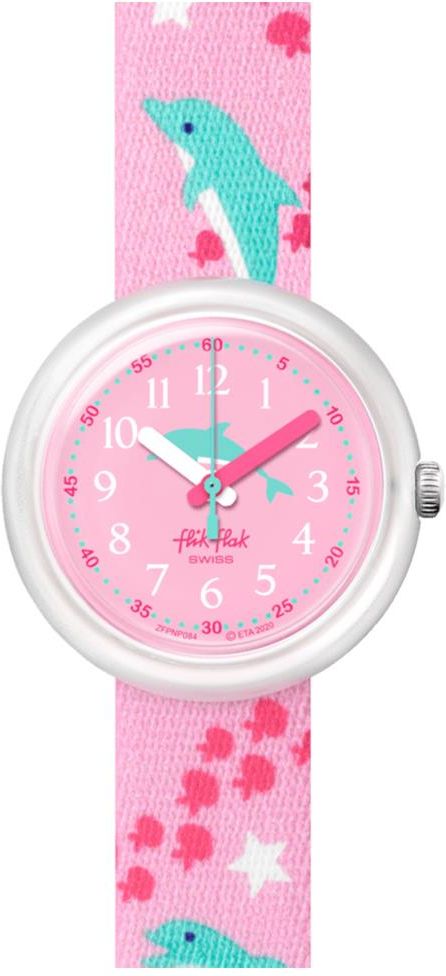 Zegarek dziecięcy Flik Flak Fintasea FPNP084 posiada białą kopertę z tworzywa połączoną z różowym