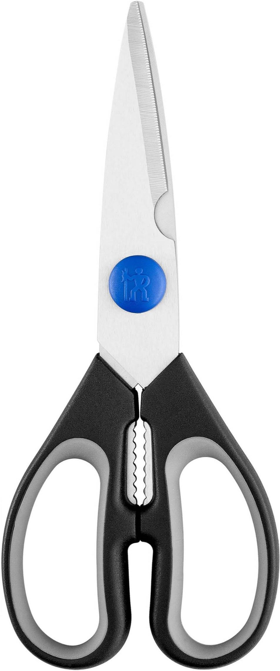 Henckels - Nożyczki uniwersalne 20 cm Prawdziwy niezbędnik w kuchni i domu! Te nożyczki HENCKELS by ZWILLING zostały wykonane z hartowanej stali nierdzewnej, dzięki czemu są niezwykle trwałe i poradzą sobie z niemal każdym zadaniem – od otwierania opakowań po cięcie kartonu. Ostrza z precyzyjnym szlifem zapewniają lekkie, dokładne cięcie bez wysiłku. Dodatkowym atutem jest wbudowany otwieracz do butelek – zawsze pod ręką, gdy go potrzebujesz. Ergonomiczne uchwyty z tworzywa sztucznego sprawiają, że nożyczki wygodnie leżą w dłoni. Solidne, praktyczne i zawsze gotowe do działania! CECHY SZCZEGÓLNE Uniwersalne zastosowanie – idealne do kuchni, domu i prac DIY Wykonane z trwałej, nierdzewnej stali specjalnej Precyzyjny szlif ostrzy – łatwe i dokładne cięcie Zintegrowany otwieracz do butelek – dodatkowa funkcja w jednym narzędziu Lekkie, wygodne uchwyty z tworzywa sztucznego – komfort użytkowania WYMIARY Produkt dostępny w rozmiarze 20 cm.