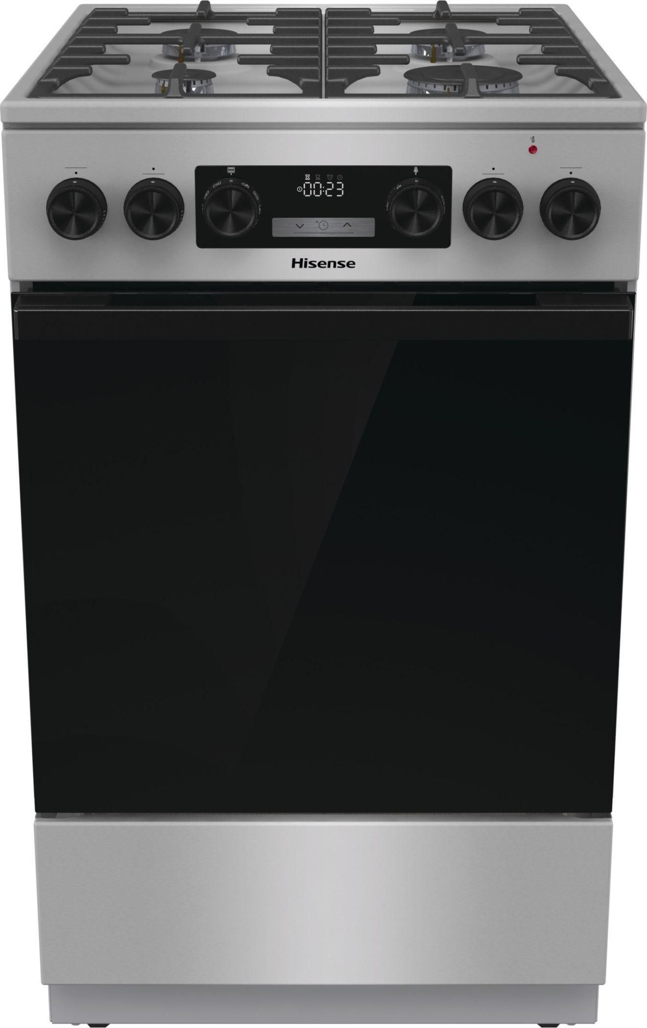 Kuchnia gazowo-elektryczna Hisense  HKS5C71XF Sposób montażu: Wolnostojące Szerokość: 500 mm Wysokość: 850 mm Klasa energetyczna: A IconLED - dotykowe programowanie godziny NAJWAŻNIEJSZE WŁAŚCIWOŚCI AIR FRY Przygotowywanie potraw bez dodatku tłuszczu To rozwiązanie wykorzystuje …
