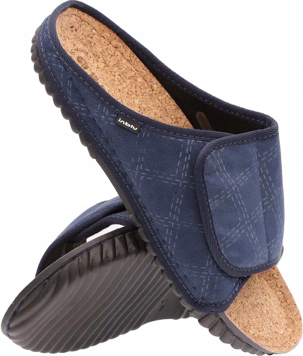 INBLU kapcie domowe męskie IN-FM-1F Cechy produktu: Pochodzenie: Polska Producent: INBLU Grupa: męskie 40/46 Kategoria: pozostałe Rodzaj: kapcie / obuwie tekstylne Cholewka: materiał tekstylny Kolor: granatowy Materiał podszewki: materiał tekstylny Wkładka: naturalny korek Spód: tworzywo PU Wysokość obcasa: 3 cm Tabela rozmiarów: Rozmiar 46 - Długość wkładki [cm]: 30, Długość stopy [cm]: 29,5 Rozmiar 45 - Długość wkładki [cm]: 29, Długość stopy [cm]: 28,5 Rozmiar 44 - Długość wkładki [cm]: 28,5, Długość stopy [cm]: 28 Rozmiar 43 - Długość wkładki [cm]: 28, Długość stopy [cm]: 27,5 Rozmiar 42 - Długość wkładki [cm]: 27, Długość stopy [cm]: 26,5 Rozmiar 41 - Długość wkładki [cm]: 26,5, Długość stopy [cm]: 26 Rozmiar 40 - Długość wkładki [cm]: 26, Długość stopy [cm]: 25,5