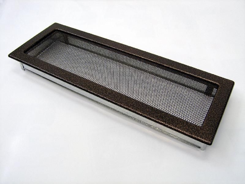 UŻYTKOWANIE Kratka kominkowa to niezbędne wyposażenie kominka. Jest to estetyczne zakończenie kanałów rozprowadzających ciepłe powietrze. Dzięki różnorodnym kształtom i rozmiarom kratki możemy dopasować ją do wyglądu kominka jak i do wystroju wnętrza. Jej instalacja jest bardo prosta, w standardowym wyposażeniu posiada kieszeń montażową, którą montujemy w ścianie bądź w obudowie kominka. Kratka wsuwana jest w kieszeń, a w razie potrzeby w każdej chwili możemy ją wyjąć i wyczyścić. Zaletą tej kratki kominkowej jest malowanie metodą proszkową co gwarantuje odporność na uszkodzenia mechaniczne oraz wysoką temperaturę. DANE TECHNICZNE : ■ Waga (kg) 1,0 ■ Szerokość (cm) 48,10 ■ Wysokość (cm) 17,00 ■ Głębokość (cm) 4,50 ■ Kolor miedziany ■ Typ prostokątna ■ Cechy kratki siatka ■ Pole czynne kratki (cm2) 516 ■ Szerokość kieszeni (cm) 45,60 ■ Wysokość kieszeni (cm) 15,20 ■ Głębokość kieszeni (cm) 4,50