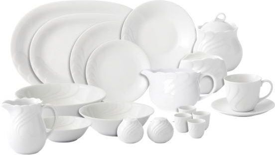 Serwis obiadowo-kawowy Porcelana Krzysztof DAPHNE na 12 osób składający się z 77 części: 12 x talerz płytki 24 cm 12 x talerz płytki 17 cm 12 x talerz głęboki 22,5 cm 1 x salaterka 23 cm 1 x salaterka 16 cm 2 x salaterka 13 cm 1 x półmisek owalny 28 cm 2 x rawierka 25 cm 12 x filiżanka 220 ml 12x …