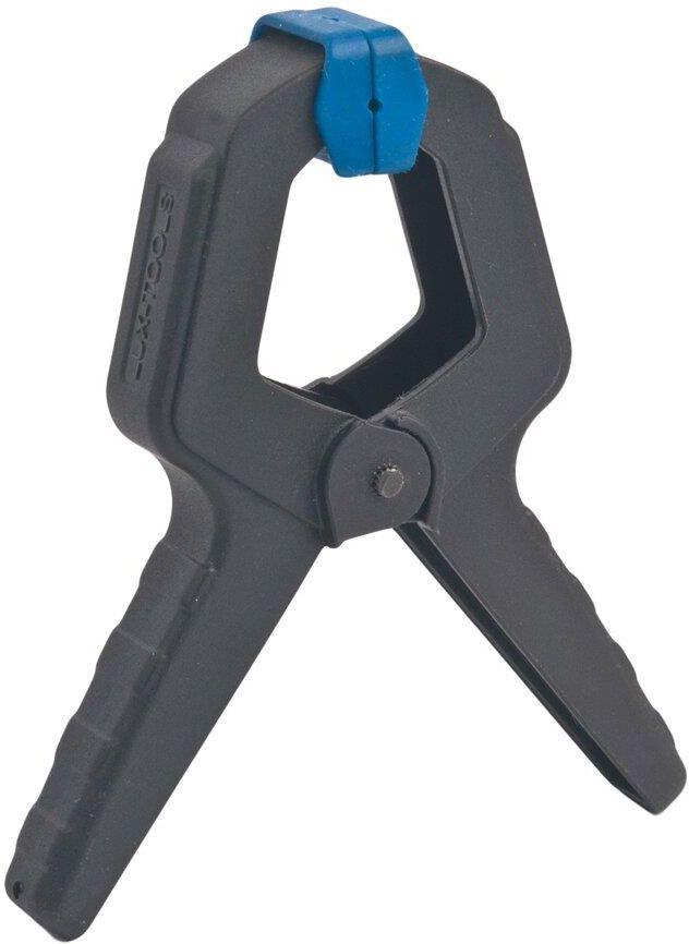 Ścisk sprężynowy LUX-TOOLS wykonanych z tworzywa sztucznego o wielkości 100 mm.Posiada mocne sprężyny i elastyczne szczęki.