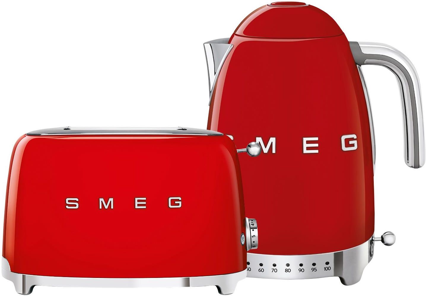 Zestaw śniadaniowy z KLF04 50's Retro Style Oferowany zestaw śniadaniowy produktów z linii 50’s Retro Style marki Smeg ułatwi i przyśpieszy przygotowywanie codziennych posiłków. Wykonane z wysokiej jakości materiałów - m.in. tworzywa i stali nierdzewnej - urządzenia mają przemyślany design o opływowych kształtach i chromowanych podstawach, który w połączeniu z intensywnym czerwonym kolorem sprawia, że świetnie zaprezentują się one na blacie kuchennym - można je będzie przechowywać na widoku, gdy akurat nie będą używane. Czajnik o pojemności 1,7 L z pokrywką otwieraną przy użyciu systemu Soft Opening posiada w swoim wnętrzu bezpieczny i praktyczny system grzewczy z ukrytymi elementami grzewczymi. Bezpieczeństwo użytkowania zapewniają automatyczne wyłączanie się po zagotowaniu wody, brak możliwości uruchomienia przy pustym zbiorniku oraz antypoślizgowe, gwarantujące stabilność nóżki. Dodatkowo urządzenie posiada przycisk regulacji temperatury, dzięki któremu można uruchomić próg grzania od minimum 50 do maksimum 100°C, co pozwoli na dostosowanie temperatury wody do własnych potrzeb. Przycisk Keep warm umożliwi z kolei utrzymanie ciepła wody na dłużej - wodę będzie można ugotować wcześniej i poczekać z obsłużeniem gości na odpowiedni moment. Ponadto czajnik wyposażony został w wyjmowany filtr wapienny ze stali nierdzewnej, który ogranicza osadzanie się kamienia w jego wnętrzu. Zaletą produktu jest także podstawa umożliwiająca obracanie w zakresie 360 stopni. Zalety czajnika: Otwieranie pokrywki z systemem Soft Opening  Antypoślizgowe nóżki stabilizujące urządzenie Regulacja temperatury wody od 50 do 100°C Funkcja Keep warm - utrzymywanie ciepła na dłużej Wyjmowany filtr wapienny ze stali nierdzewnej Automatyczne wyłączenie przy 100°C Automatyczne wyłączenie przy pustym czajniku Obracanie czajnika na podstawie 360° Toster na dwie kromki posiada komory o szerokości 36 mm. Pieczywo automatycznie umieszczane jest na ich dnie oraz automatycznie wysuwane po zakończeniu cyklu opiekania, co przyspiesza przygotowywanie tostów. Sześciostopniowa regulacja daje możliwość kontroli poziomu opiekania. Natomiast trzy programy pracy pozwalają na podgrzewanie kromek, rozmrażanie pieczywa oraz przygotowywanie bajgli, co zwiększa zastosowania tostera. Zainstalowana wewnątrz, łatwa w opróżnianiu tacka zbiera okruchy, zapobiegając powstawaniu niepotrzebnego bałaganu wokół urządzenia. Funkcje tostera: 6 stopni opiekania 3 programy: podgrzewanie, rozmrażanie, bajgiel