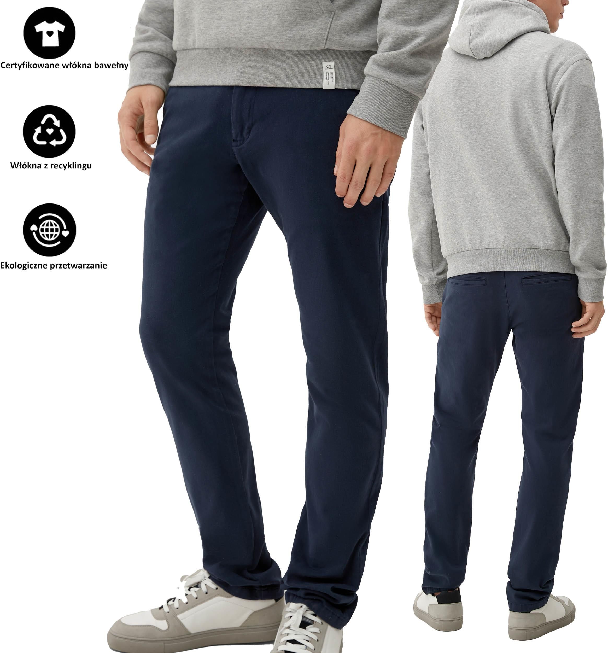 Spodnie męskie s.Oliver niebieskie 32/34Certyfikowane włókna bawełny Informacje o produkcie: Spodnie męskie s.Oliver Zapięcie na guzik i zamek Kieszenie: z rozcięciem, na monety i tylna Pas: szlufki na pasek Kolor niebieski Dopasowanie: Slim Fit Materiał: 97% bawełna, 3% elastan Produkt ten wspiera ekonomiczną, ekologiczną i społeczną uprawę bawełny. Pozyskiwanie zrównoważonej bawełny odbywa się zgodnie z zasadą równowagi masy.Q/S by s.Oliver
