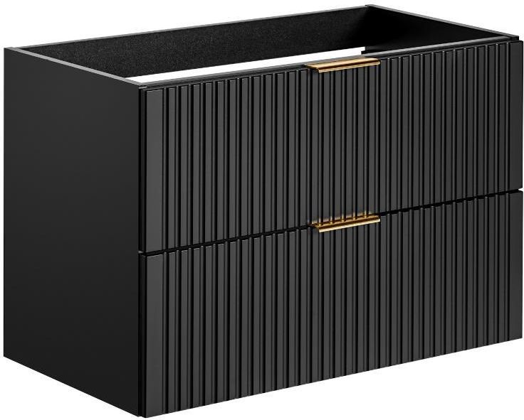 Czarna szafka pod umywalkę lub do kompletowania z blatem 80cm Szerokość - 80 cm Wysokość - 57 cm Głębokość - 46 cm Kolor - CZARNY MAT Materiał - PŁYTA LAMINOWANA / MDF Uchwyty - Plastikowy, 3 Kolory w zestawie: czarny mat, chrom połysk, złoty połysk Rodzaj mebla - Wiszące Prowadnice - Cichy domyk Ilość szuflad - 2