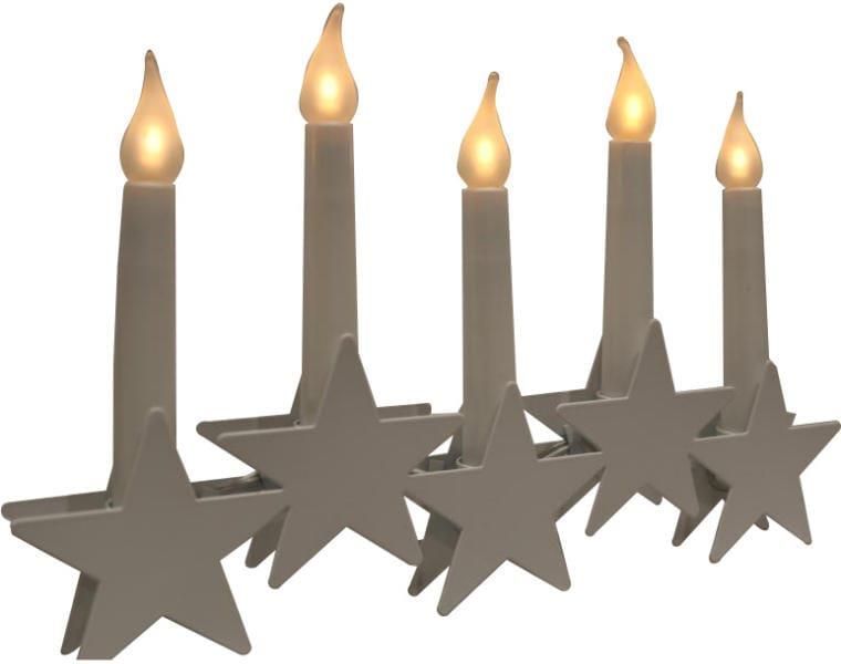 Metalowy świecznik stojący z 5 LED w kształcie gwiazdek to elegancka dekoracja, która wprowadza ciepłą atmosferę do każdego wnętrza. Jego biała kolorystyka doskonale komponuje się z różnymi stylami aranżacji, a ciepłe białe światło emituje przyjemny blask, idealny na romantyczne wieczory czy rodzinne spotkania. Zasilany dwiema bateriami AA (w zestawie), świecznik jest wygodny w użytkowaniu, nie wymagając dostępu do gniazdka. Dzięki stopniowi ochrony IP20, jest przeznaczony do użytku wewnętrznego, co sprawia, że doskonale sprawdzi się na stole, kominku czy w oknie. Ten stylowy świecznik to nie tylko praktyczny element dekoracyjny, ale także świetny pomysł na prezent dla bliskiej osoby, która ceni sobie wyjątkowy klimat świąt i uroczystości. Wzbogać swoje wnętrze o tę efektowną dekorację i ciesz się magią światła!
