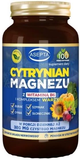 Kapsułki Asepta Cytrynian Magnezu Z Witaminą B6 100szt. Wałcz