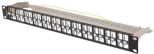 PATCH PANEL PUSTY 48 PORT 1U 19" FTP DO MODUŁÓW KEYSTONE CZARNY LANBERG Patch panel pusty 48 port 1U 19" FTP do modułów Keystone to niezawodne i wysoce funkcjonalne urządzenie, które idealnie nadaje się do zarządzania i organizacji sieci LAN w profesjonalnych lub domowych środowiskach. Patch panelu obsadzić można szybko i prosto keystonami sieciowymi RJ45, RJ11, RJ12 jak i audo-video-data np. HDMI, USB, F, BNC itp. Produkt wykonany z stali galwanizowanej co w pełni daje kompatybilność z ekranowanymi przewodami oraz modułami keystone. W zestawie: półka umożliwiająca organizację oraz mocowanie kabli, przewód uziemiający, śruby M6. Typ złącza: Niewyposażone Ilość portów: 48 Wyposażony w złącza: Nie Rozmiar: 19" Wysokość teleinformatyczna: 1 U Ekranowanie: Tak Uziemienie: Tak Materiał: Stal galwanizowana Oznaczenia portów w postaci ponumerowanych pól: Tak Kolor: Czarny Kolor palety RAL: RAL9004 Długość: 122.5 mm Szerokość: 482.6 mm Wysokość: 44 mm Waga: 0.48 kg Wymagana liczba śrub: 4