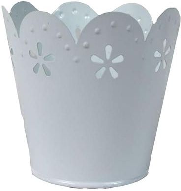 Osłonka koronkowa aluminiowa o wysokości 10,5 cm Ø 11,5 cm. Osłonka w stylu vintage na zioła jak i kwiaty, nada nowoczesny wygląd każdej kuchni. Idealnie nadaje się do aranżacji balkonów i tarasów. Osłonka może też ozdobić hotel, restauracje, salon kosmetyczny lub sklep.