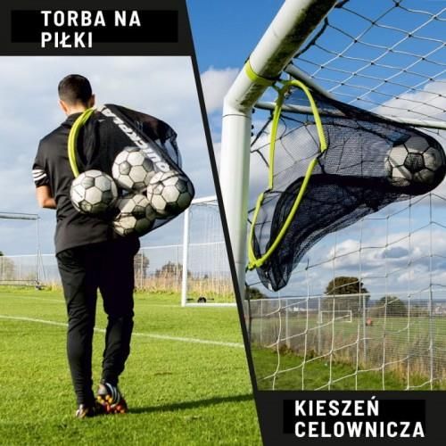 Target Sax Quickplay to jeden produkt, który zastępuje dwa - torbę na piłki, która utrzymuje porządek na polu gry, oraz wiszącą siatkę, która poprawia celność strzelania. Ćwicz celność z górnych koszy! Target Sax pasuje do większości plastikowych i metalowych bramek piłkarskich, zapewniając fantastyczną platformę do popisywania się strzałami. Zaprojektowany przez sportowców dla sportowców, Target Sax poradzi sobie ze wszystkim, co w niego rzucisz, kopniesz lub uderzysz. Sprawi, że podróże na boisko treningowe i z powrotem będą dziecinnie proste, utrzyma porządek w pokoju ze sprzętem i wyostrzy umiejętności na dzień meczu. Zabawny, funkcjonalny i trwały, Target Sax jest niezbędnym dodatkiem do listy wyposażenia każdego sportowca. Torba na tarczę i piłki 2 w 1 Mieści 10 piłek Obciążona obręcz zapewniająca stabilność Opatentowana składana konstrukcja Solidna i trwała konstrukcja Przetestowany do prędkości 110 km/h