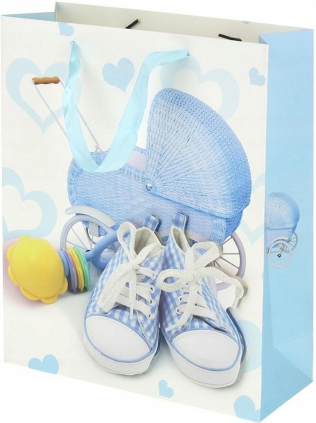 TOREBKA UPOMINKOWA TOREBKA NA PREZENT Torebka upominkowa torebka na prezent Torebka prezentowa idealna jako oprawa prezentu dla najmłodszych dzieci. Torebka jest z piękna grafiką dziecięcego wózka muśnięta brokatem z wstawkami bucików w formie 3D Wymiary torebki:31*40*12 cm Torebki występują w kolorystyce zarówno chłopięcej jak i dziewczęcej wysyłamy losowo zgodnie z dostępnością na magazynie. Torebka upominkowa torebka na prezent