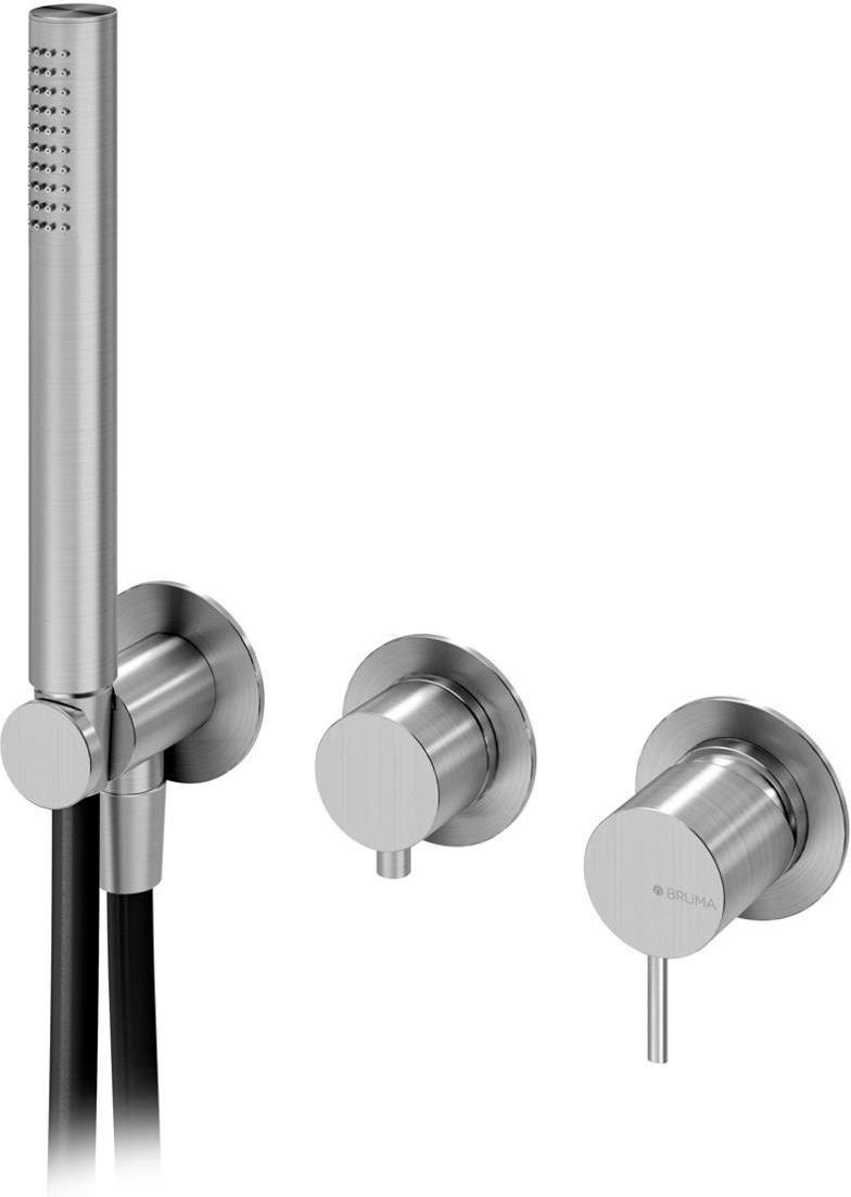 Bruma X-Alpha Bateria wannowo-natryskowa podtynkowa Satin stainless steel 1868102IS Bateria 3-otworowa ze słuchawką, mieszaczem i przełącznikiem. Bateria 2-drożna. Element podtynkowy w komplecie Kolor: Satin Stainless Steel (satynowa stal nierdzewna) Wymiary: Szerokość: 260 mm Cena dotyczy całego zestawu z elementem podtynkowym