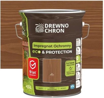 DREWNOCHRON IMPREGNAT ECO&PROTECTION ORZECH 4,5L Przedmiotem aukcji sklepu "KLEKS NA ŚCIANIE" jest: DREWNOCHRON IMPREGNAT ECO&PROTECTION ORZECH 4,5L ZALETY EXTREME AQUA STOP maksymalna ochrona przed wodą, Wodoodporna powłoka, odporna na działanie deszczu, śniegu i słońca, Do 9 lat ochrony …