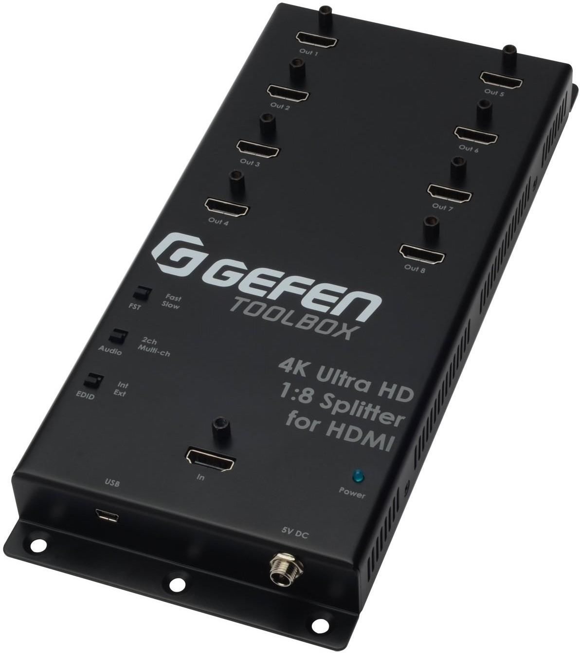 Gefen GTB-HD4K2K-148C-BLK | Splitter HDMI 4K UHD, 1 x 8, 4K 4:2:0 Jednoczesne wyświetlanie źródła 4K na maksymalnie ośmiu wyświetlaczach Zaprojektowany do obsługi 10 warstw podziału/kaskadowania Obsługuje rozdzielczości do 4K DCI (4096 x 2160 przy 24 i 30 Hz), 4K Ultra HD (3860 x 2160 przy 60 Hz, …