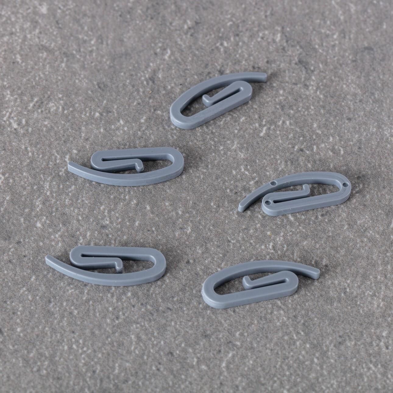 Haczyk ślimak Premium w kolorze szarym. Haczyk ślimak to ruchomy element uzupełniający do szyny sufitowej aluminiowej Premium. Wymaga on połączenia z suwakiem oczkiem do szyny Premium, co pozwala na przesuwanie firan i zasłon w szynie. Uwaga! Suwak oczko jest elementem stałym w szynie, a haczyk ślimak ruchomym, który jest wypinany z taśmy zasłony lub firany przed praniem. Wymiary: szer. 0,3 cm, gł. 1 cm, wys. 2,7 cm. Materiał: tworzywo sztuczne. Kolor: szary.Cena dotyczy: 1 szt.